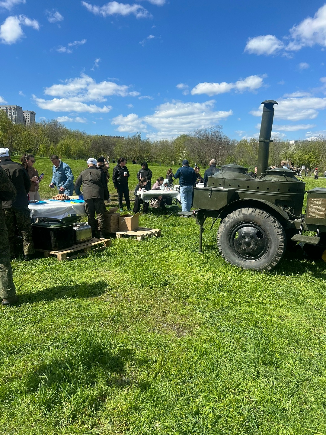 Все гости и участники мероприятия могли отведать вкусную кашу из полевой кухни и выпить горячий чай со сладостями.