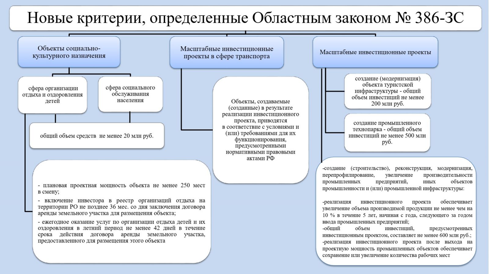 возможность для признания масштабным инвестиционного проекта по созданию (модернизации) объекта туристской инфраструктуры;