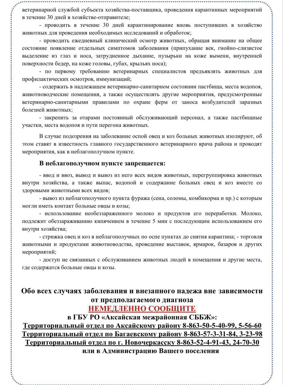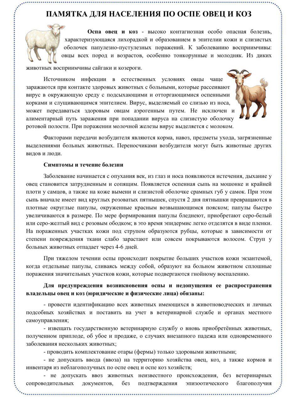 Памятка для населения по оспе коз и овец